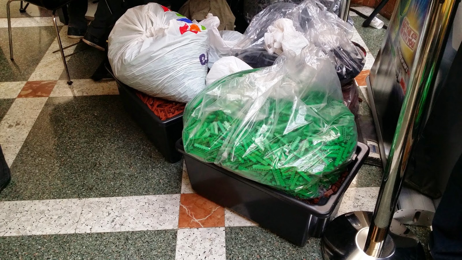 Here are the parts divided out in brick by colour and size for the larger parts, and then general type for the smaller ones. this took me about 3 hours!!