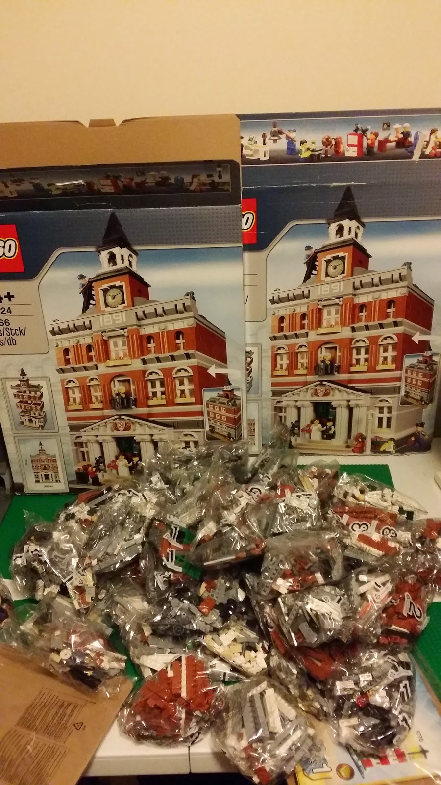 I was going to make this from 3 sets, but I think I can get 90% of the parts I need form the 2 boxes and then just use some of my existing brick and windows to finish it off. I also swapped out the 2x tan 32x32 baseplates and replaced them with 6x green 32x32 baseplates.